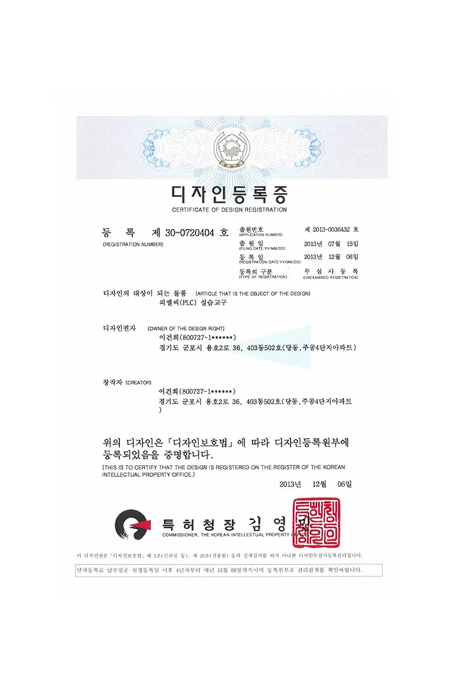 디자인 등록증 - 피엘씨(PLC) 실습교구