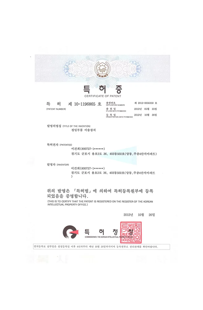특허증 - 정밀부품 이송장치