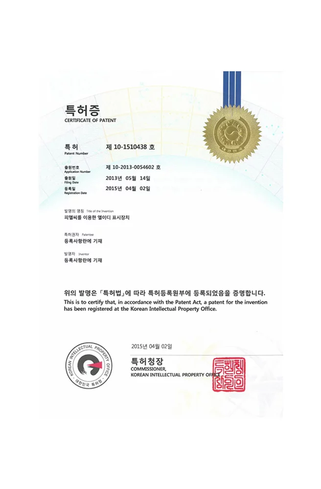 특허증 - 피엘씨를 이용한 엘이디 표시장치