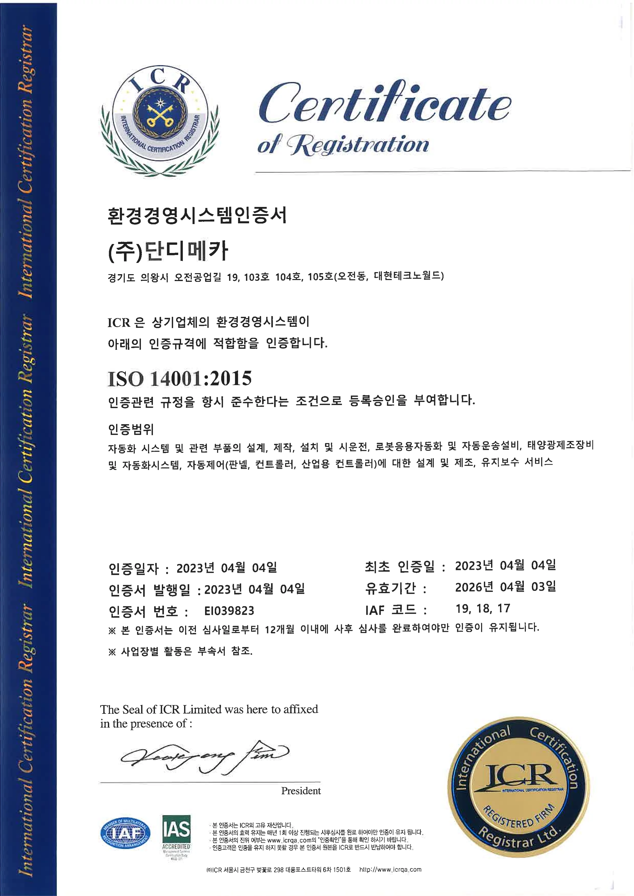 (주)단디메카 - ISO14001