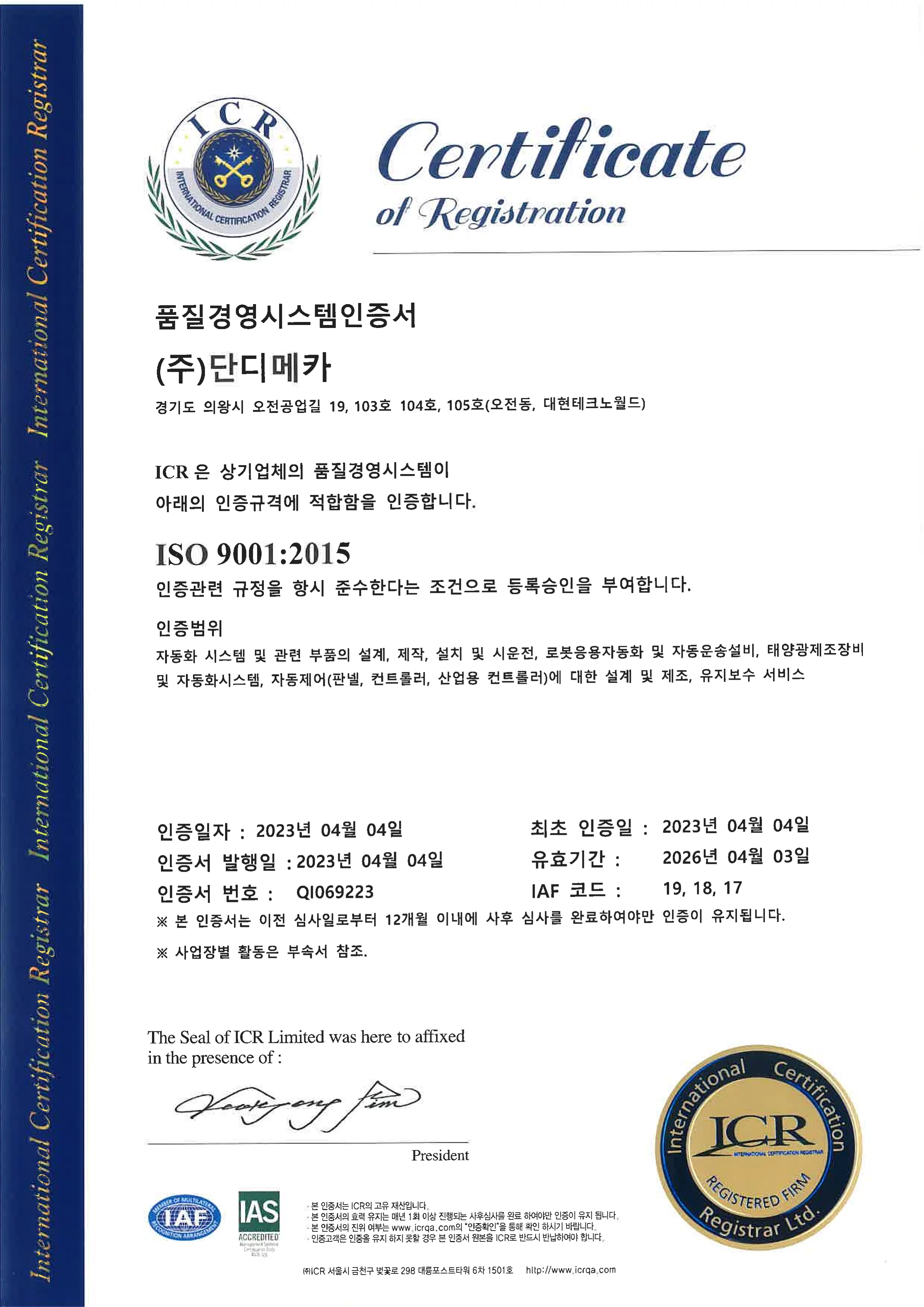 (주)단디메카 – ISO9001
